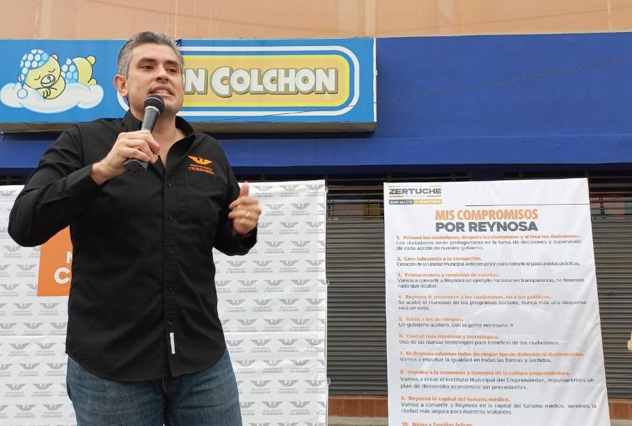 Juan Carlos Zertuche, candidato de Movimiento Ciudadano a la presidencia municipal inició su campaña proselitista, firmando sus 10 compromisos por Reynosa.