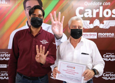“Estamos contentos que Carlos Peña Ortiz haya decidido unirse a Morena para competir por la alcaldía de Reynosa. Bienvenido Carlos, vamos a impulsar el cambio verdadero en Tamaulipas”, fue el mensaje que publicó Mario Delgado el 20 de marzo, acompañando dicha imagen.