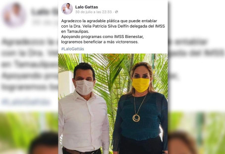 Asimismo, Gattás Baez hizo públicas algunas imágenes de sus reuniones con la delegada del IMSS, VELIA PATRICIA SILVA, y con el delegado estatal del INFONAVIT, HONORIO CORTÁZAR.