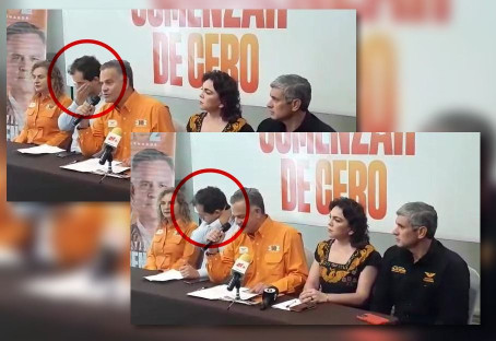 Mientras que el dirigente estatal del Partido Naranja, JUAN CARLOS ZERTUCHE ROMERO, se arreglaba una y otra vez el cuello de la camisa, y sonreía tímidamente ante las cámaras.