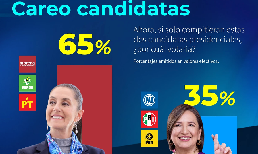 La casa encuestadora publicó su más reciente Estudio Nacional de Clima Político este miércoles 24 de enero, donde destaca que la candidata de Morena, PT y PVEM tiene una ventaja del 61.8 por ciento de intención de voto, en comparación con el 31.7 por ciento de la candidata de PAN-PRI-PRD, y 6.5 por ciento de Jorge Álvarez Máynez, de Movimiento Ciudadano.