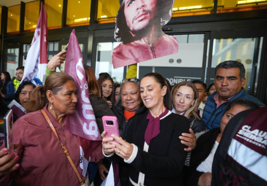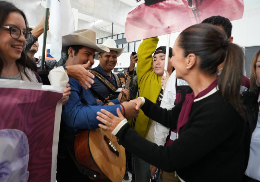 Fue entre el son de un tradicional hispano mexicano interpretado por un grupo local y en el que entre versos describen el momento histórico que vive México al tener la posibilidad de que una mujer de la transformación sea la primera Presidenta, que Claudia Sheinbaum recibió el apoyo y el cariño de mujeres y hombres entre abrazos, palabras de cariño y sonrisas