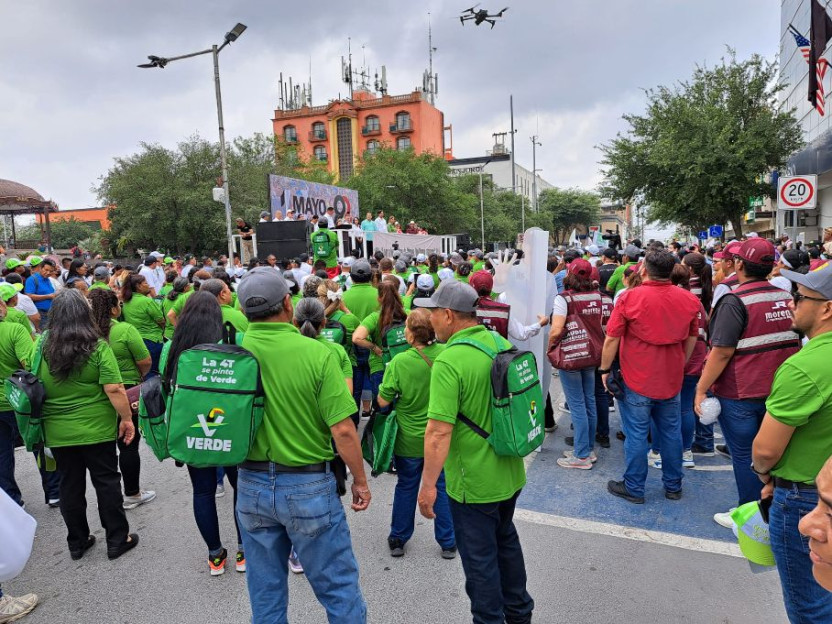 Los candidatos al Senado por el Verde Ecologista, Maki Ortiz Dominguez, Eugenio Hernandez Flores, así como Claudia Hernández, candidata a diputada federal por Morena, acompañaron a los líderes de la CTM, encabezando el desfile. Se entregaron mochilas verdes, gorras del partido verde y gorras de Morena.