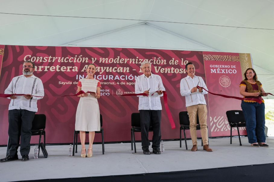 Sayula de Alemán, Veracruz.- Sin traicionar al pueblo de México y dando continuidad a los Caminos de la Transformación es como planteó su gobierno la virtual Presidenta electa de la República, Claudia Sheinbaum Pardo, en la gira conjunta que realizó con el Presidente Andrés Manuel López Obrador, para inaugurar la carretera Acayucan-La Ventosa, desde el municipio de Sayula de Alemán, en Veracruz.