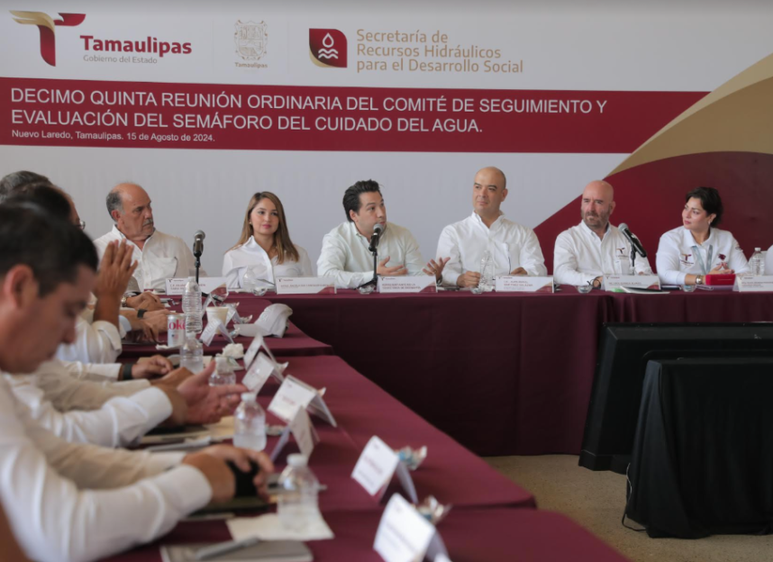 Nuevo Laredo fue sede de la Décima Quinta Reunión Ordinaria del comité de Seguimiento y Evaluación del Semáforo del Cuidado del Agua que organiza la Secretaría de Recursos Hidráulicos para el Desarrollo Social de Tamaulipas en la que participaron los gerentes generales de Organismos Operadores de Agua en el Estado.