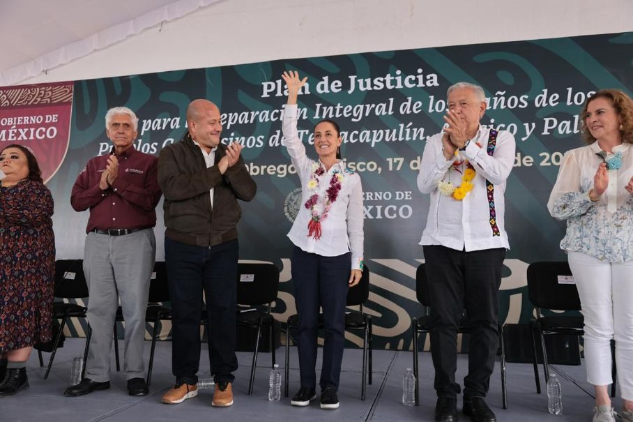 Cañadas de Obregón, Jalisco, a 17 de agosto de 2024.- La continuidad de la Cuarta Transformación también significa que el desarrollo y la prosperidad también será para los pueblos originarios, aseguró la Presidenta Electa de México, Claudia Sheinbaum Pardo, durante la gira conjunta que realizó con el Presidente Andrés Manuel López Obrador para entregar el Plan de Justicia para la Reparación Integral de los Daños de los Pueblos Campesinos de Temacapulín, Acasico y Palmarejo, y la revisión de la Presa “El Zapotillo” en el estado de Jalisco.