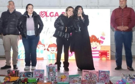 Ambas estuvieron en un evento realizado en el fraccionamiento “Satélite”, donde repartieron juguetes (chinos) a los niños.