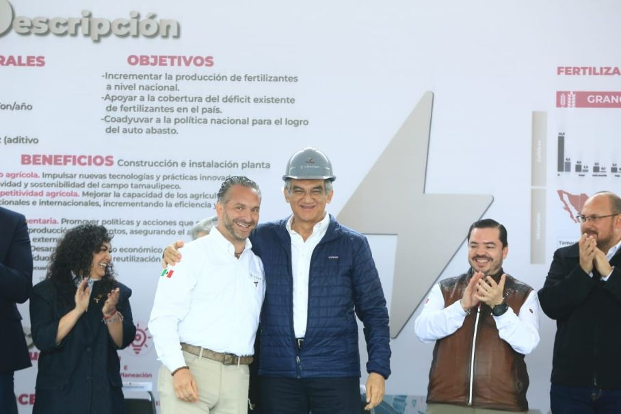 Con una inversión histórica de mil 300 millones de dólares y con el objetivo de coadyuvar a incrementar la producción en el campo mexicano, el gobernador Américo Villarreal Anaya presidió el arranque de obra de la planta de fertilizantes, que tendrá una producción de 700 mil toneladas anuales y generará mil 500 empleos directos durante su construcción.