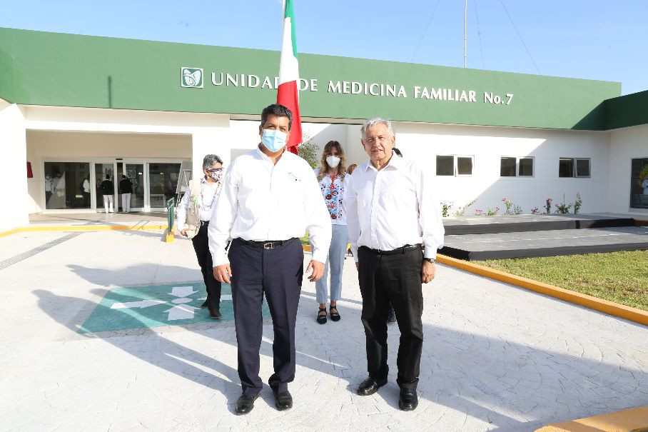 Continuando su gira de trabajo por Reynosa, el Presidente Andrés Manuel López Obrador junto al Gobernador Francisco García Cabeza de Vaca, inauguraron lasnuevas instalaciones de la Unidad Médica Familiar No. 7 en esta la ciudad.
