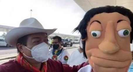 A ver si a Zertuche no se le ocurre regalarle a Mario Delgado una botarga como la que le obsequiaron sus simpatizantes al llegar al aeropuerto de Veracruz, que más bien parecía una figura de terror que de simpatía, la cual desató cualquier cantidad de memes y burlas en las ‘benditas redes sociales’.