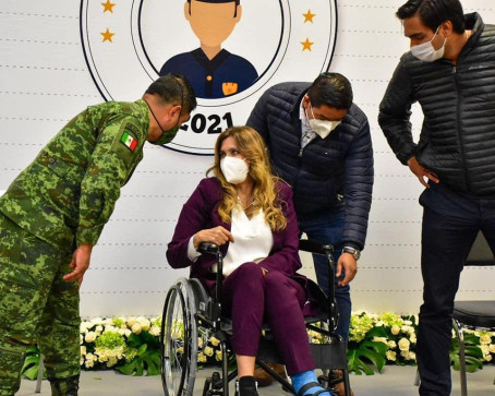 Ya al día siguiente, Maki Ortiz apareció en un evento público conmemorativo del Día del Policía, en silla de ruedas, y comentó que se había fracturado la tibia de su pierna izquierda. ¿Será?.